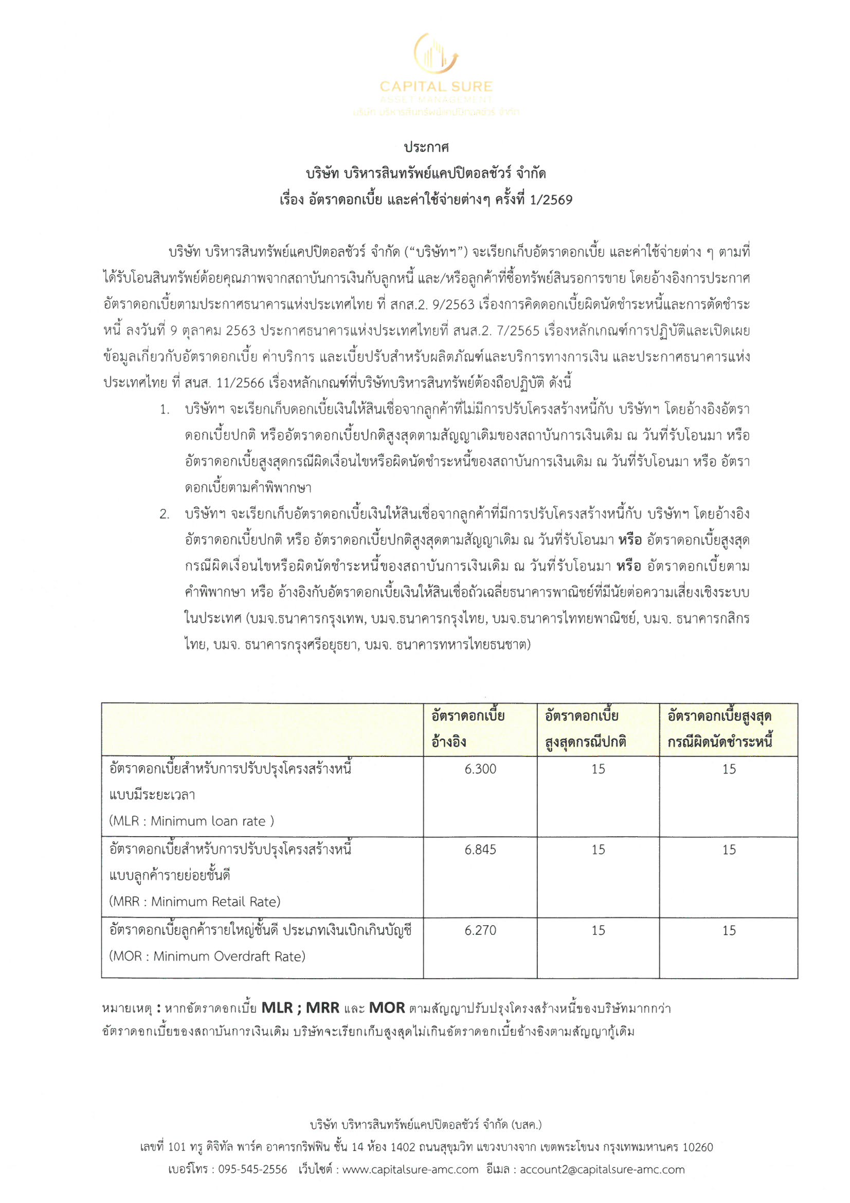 อัตราดอกเบี้ยการปรับปรุงโครงสร้างหนี้ ครั้งที่ 1/2569